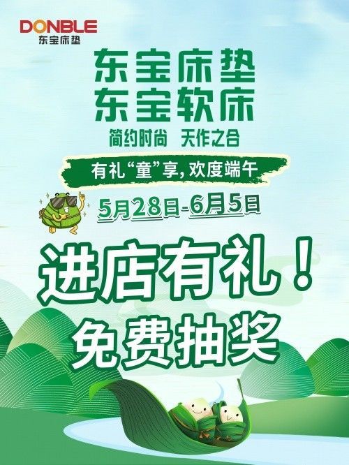 即将到来的六月里,“六一”儿童节与端午节接踵而至。这个难得的假期,想好带家人去哪里玩耍了吗?5月28日至6月5日,为迎接“双节”到来,东宝床垫准备了诸多活动,诚邀广大新老客户一起欢度佳节。