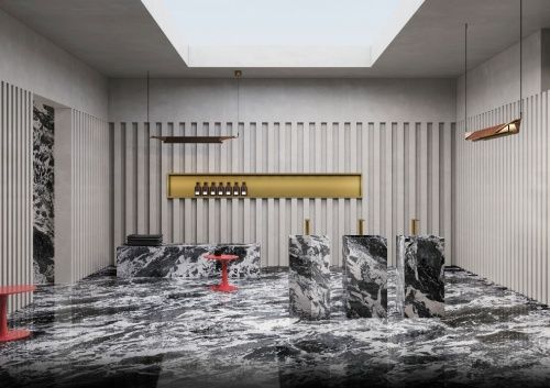 创意源自巴西圣埃斯皮里图州 Espírito Santo,大西洋岸最美的火山岛,如诗如画的水墨背景,金色与银白纹理相间, 最简奢的黑金石材。马可波罗岩板巴西水墨材质细腻、瑞泽亮丽、自然通透,整体雅致如浩渺银河,金色纹理更加彰显出珍贵的品质。