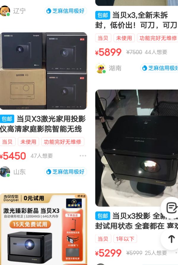 像闲鱼网友评论,2021年初5999元卖的这个当贝X3激光投影仪,现在还能这么高的价位,应该见过国内最保值的数码产品了,最重要的是二手当贝X3激光投影仪,一堆人抢着看想要买。这样的情况似乎只有之前的苹果手机可以做到。