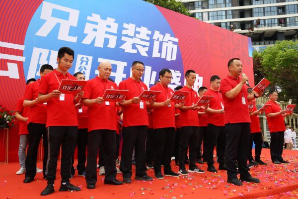 开业盛典现场,兄弟装饰集团云阳工程团队现场宣誓,向来宾们展示兄弟装饰“能工巧匠品质宣言”,为云阳广大消费者打造云阳经典样板工程。