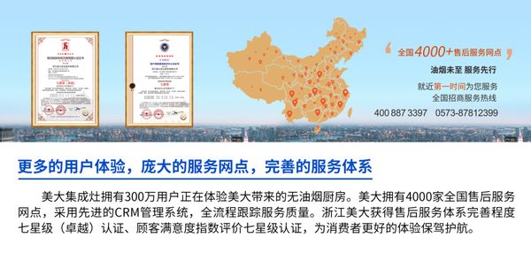 集成灶哪个品牌好?美大集成灶是集成灶的发明者,换句话这个行业就是美大开创的,至今已有二十年的历史,始终专注于集成灶的研发、制造,口碑非常好,技术沉淀非常成熟,是一家可以信赖的集成灶大品牌。美大获得双七星服务认证,全国4000个销售服务终端,让消费者更放心。