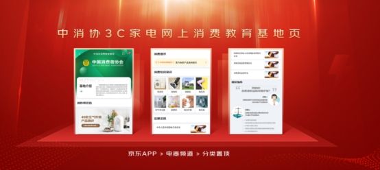 “中消协3C家电网上消费教育基地”由中消协和北京市消协主办,由中国家电研究院提供技术支持,京东集团承办,该基地致力于为消费者提供有关3C家电消费的咨询服务,进一步拓宽消费教育渠道、丰富消费教育形式,提升消协组织消费教育工作的有效性、便利性和可及性。