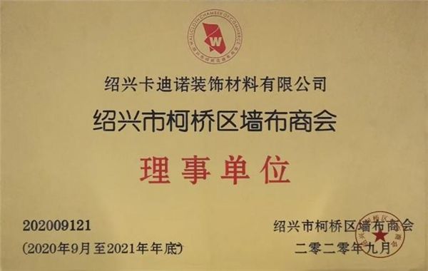 奢宝丽所属公司,绍兴卡迪诺装饰材料有限公司成为绍兴市柯桥区墙布商会理事单位,该商会为行业首家权威商会机构,是政府和企业间的桥梁和纽带。