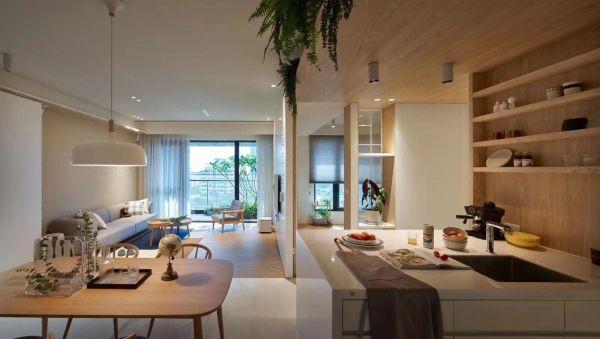 陈先生的房子是次卧和卫生间不规则的格局,厨房和餐厅也非常狭小,为了充分提升空间的利用率,设计师将卫生间设计成了干湿分离的格局,既能充分利用空间,也能方便使用,而次卧则是采用墙体柜的形式,精简布局,提升活动空间,将厨房和餐厅打通,打造成大气的开放式厨房,整体设计突出简单实用且不失格调的风格。