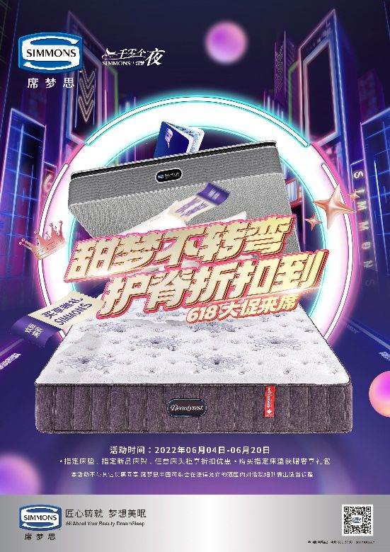618年中大促限时开抢,Simmons席梦思两大床垫系列:Beautyrest甜梦系列和BackCare护脊系列,全线享折扣,再叠加赠品!以护脊甜梦,开启全新睡眠体验!