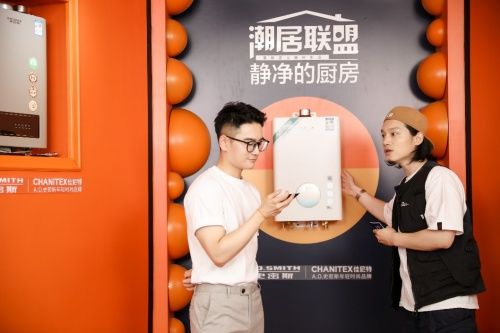 在潮居空间里,品牌主理人张晖带来了A.O.史密斯-佳尼特为年轻潮居量身定制的潮居解决方案:无需等待的畅快舒适热水、一键即饮的大流量冷热净水、大吸力也安静、爆炒档也安静的「瀞」油烟机,引得直播间嘉宾点赞种草。