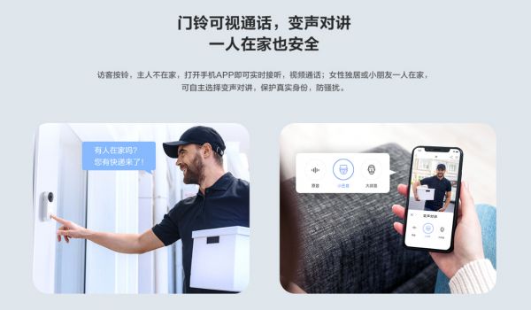 当有人按铃时,门内chime会响起铃音,1米距离最大72分贝,20首chime铃音还可自主选择;若不方便开门或者不在家时,打开手机APP也能实时接听,并进行视频通话,还可以使用快捷语音进行回复,如“你好,请将快递放在门口”。当独居女性或者小朋友一人在家时,可选择变声对讲,保护真实身份,增强安全感。