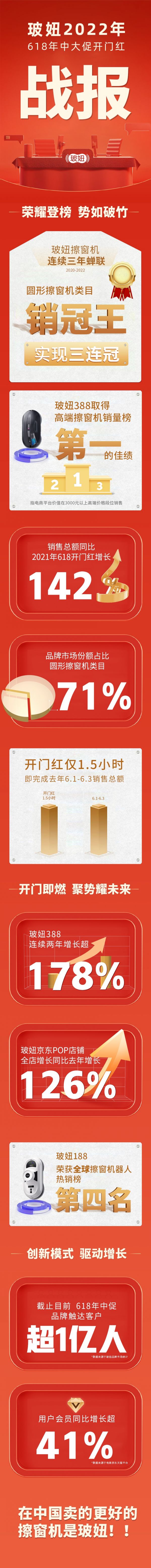备受期待的618年中大促正式在6月1日拉开了序幕,而作为此次大促重头戏的“家居家电类产品”自然也成为了大家抢购的焦点。这几天,不少品牌陆续发布了618开门红的首日战报,其中玻妞擦窗机器人以亮眼的表现,销量再创历史新高。