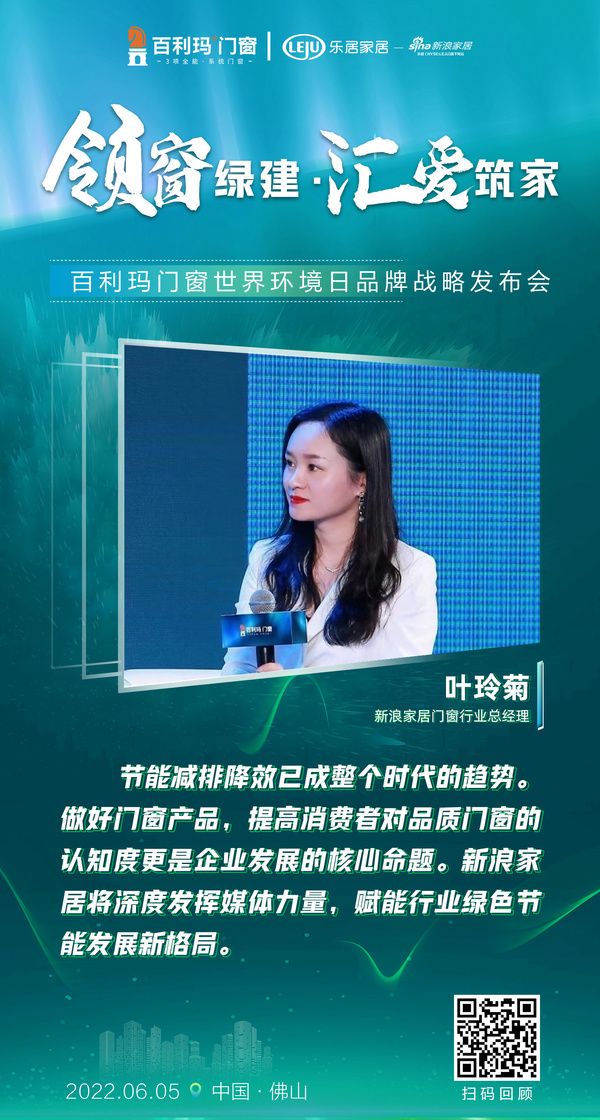 新浪门窗频道讯 6月5日,百利玛门窗联合新浪家居共同举办“领窗绿建·汇爱筑家”2022百利玛门窗世界环境日品牌战略发布会,向消费者传达最新使命——让建筑更绿色、更节能。