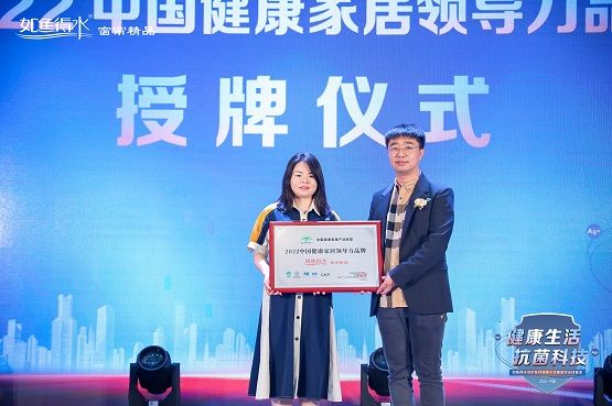 在接下来的授牌仪式上,孙雪峰代表中国健康家居产业大会组委会,全国健康家居产业联盟、全国卫生产业企业管理协会健康生活方式产业分会、中卫安认证中心(CHS),向如鱼得水授予“2022中国健康家居领导力品牌”荣誉,此次授牌既是对如鱼得水品牌在推动国内健康家居产业发展所作贡献的肯定,也进一步巩固了如鱼得水品牌在窗帘行业的领导地位。