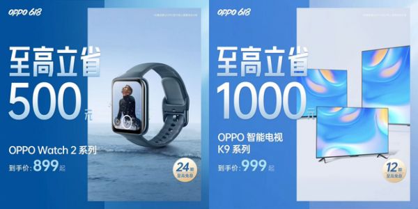 除了手机,OPPO IoT等多款爆款产品也有大幅度优惠,比如OPPO智能电视K9系列也带来重磅福利,至高立省1000元,仅售999元起。OPPO 智能电视 K9x 65英寸直降500元,到手仅需1999元。OPPO Watch 2至高立省500元,最低仅需899元,包括平板电脑、真无线降噪耳机等其余产品均有惊喜优惠。