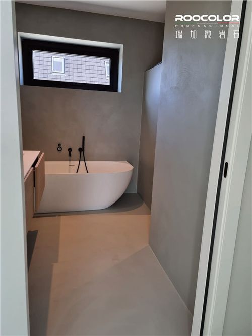 通过朋友介绍我知道了瑞加微岩石,在实体店我对产品性能做了深入的了解,瑞加微岩石不仅颜值高(符合我想要天然质感的要求),还具备超强的功能特性——坚硬、耐污、抗裂,可以实现墙地一体化的效果,在浴室的小空间中起到扩展视觉延展性的作用。我从店里带回了一块瑞加微岩石的样板准备测试产品的稳定性,回家放在锅煮了十几个小时,煮后样板的颜色、硬度等性能都没变化,这让我更加信服。为了验证瑞加微岩石原装进口的真伪,我还特意从网上翻墙找到意大利工厂的有关信息,确认后我放心的签约下单了,施工后的效果果然让我惊艳。