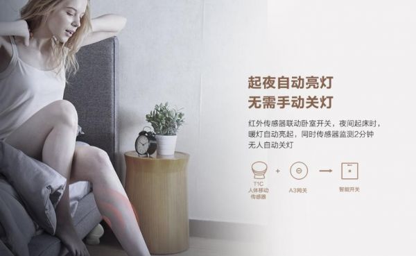当你酣睡后,萤石空气检测仪也在实时监测室内环境。当检测到卧室空气质量不好,新风、地暖、加湿器等系列设备自动调整到舒服健康的睡眠环境,守护你的健康。起夜时,智能开关联动人体红外探测器,小夜灯亮起,走到哪里都有光亮,看清脚下也不打扰家人美梦。