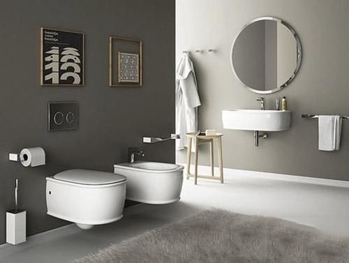 若担心移位程序太复杂的话,也可以选择装壁挂式马桶。这类马桶排水箱嵌入墙壁中,移位管道可以跟着墙壁走,也不用垫高地面,让墙面看起来更加高大上。