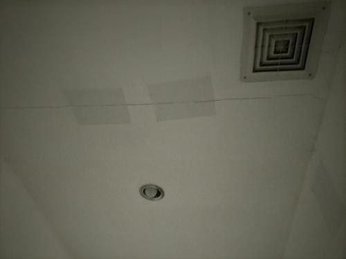 4、天花板有裂缝是很常见的现象,这基本都是因预制板所引起的。对于这种情况,我们应先除灰,然后再重新来做批灰,这个批灰步骤需一次性完成,才能避免再次出现开裂。