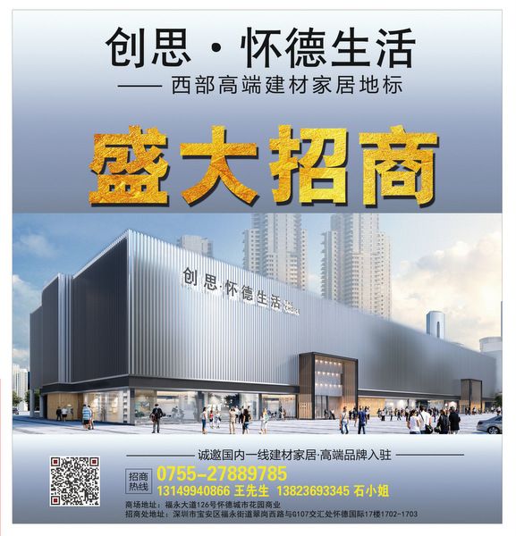目前,已进驻怀德并即将展开招商的“怀德生活”项目总负责人即深圳创思建材管理有限公司副董事长蔡妮娜女士表示:“怀德生活”雄踞粤港澳大湾区核心区域正在崛起的空铁门户区,毗邻宝安国际机场和深圳国际会展中心,地处空港型国家物流枢纽中心地带。以机场、码头、高铁、地铁、城轨、高速“六位一体”的综合交通网络,能无缝链接大湾区资源。而深圳创思建材管理有限公司董事长邓国泰先生提到:“怀德生活”项目恰逢得天独厚的历史机遇,得益于怀德村股份公司对新科技、新创意、新人才的大力支持——该项目不仅是一个普通的商场,不是只将商户集合在一起,其将立足于西部高端建材家居综合体的打造,也将从传承保护和发扬怀德村珍贵的历史文化出发,把项目打造成引领生活方式、文化旅游相结合的目的地消费地标,传递怀德价值与怀德文化,让“怀德生活”跳脱传统作为装修建材的采购集成地,输出一种独特的生活方式,让行业中每个环节的服务者与需求者都能感受到行业另一种生态模式与成交闭环效率的提升。