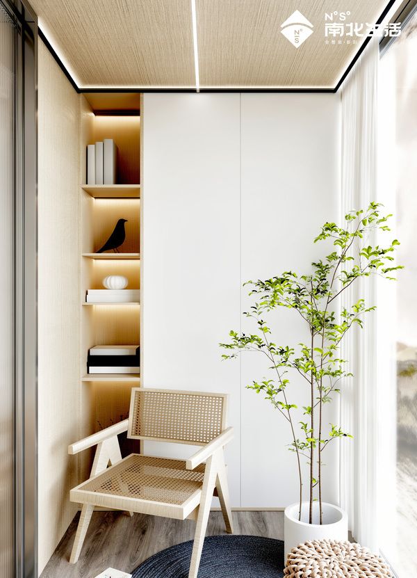 宠物的世界很简单,在阳台摆一个小窝,放一块柔软的垫子,这就是它最爱的地方。洞洞板文可摆放饰品装饰阳台,武可供猫咪蹦跳攀爬。顶与墙统一的色彩又让本就充满萌意的阳台更显时尚的气质。