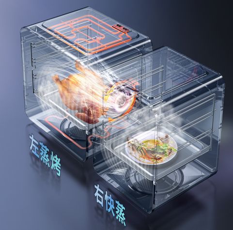 其次,全新一代蒸烤独立集成灶相较普通蒸烤独立集成灶,可以实现的蒸烤形式大幅增加,包括大腔多量蒸、大腔多量烤、蒸烤组合高温蒸、蒸烤组合蒸汽烤、空气速炸、小腔便捷速蒸、蒸烤分腔、分腔分时蒸。八大创新烹饪组合为用户带来更丰富体验的同时,引领行业新风向。