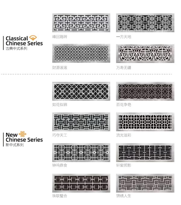 中式花纹和现代家居的结合往往是家装中较难融合的部分。风口作为现代建材领域的产品,如何与中式家居融合呢?