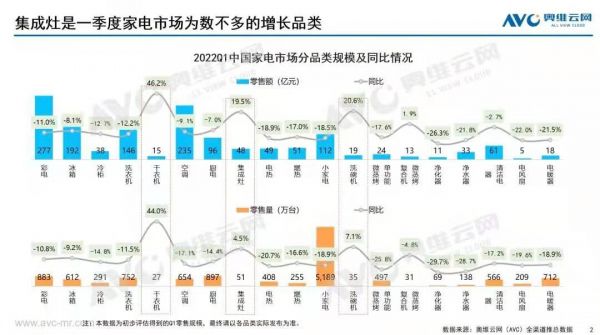 奥维云网:集成灶是2022一季度家电市场为数不多的增长品类