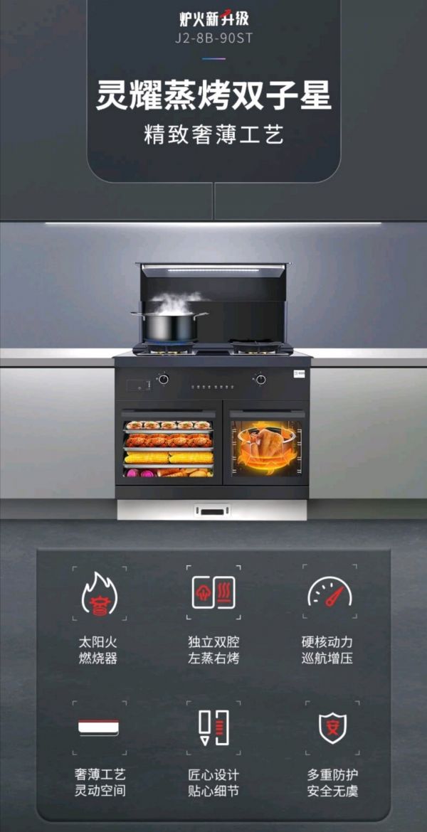 帅丰J2-8B-90ST灵耀蒸烤双子星集成灶