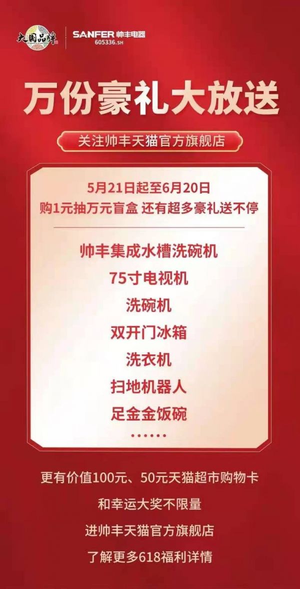 结语:无论是单身一族,还是已婚人士,无论是多口之家,还是三口之家,无论是健身养生需求,还是厨房多元需求,都需要一台集成灶来满足生活刚需,并提升生活幸福感。帅丰集成灶618狂欢大促正在进行中,万分豪礼大放送,大家不妨利用这个机会,开启一场厨房焕新之旅。