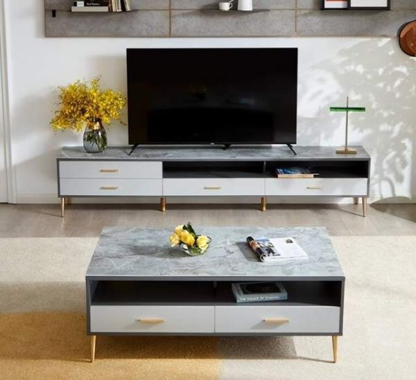 比起单一的挑选,我更倾向于全友这种配套的组合搭配,茶几、电视柜款式相同,将灰色山脉色调融入时尚设计之中,闪耀点点鎏金微光,整体感更强,显得有格调又舒适,让居家生活变身一场奢享。
