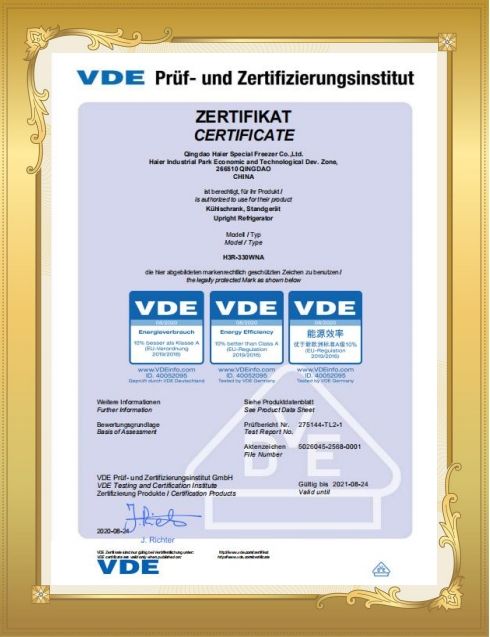 Stiwa是由德国政府资助的公信力第一的检测机构。此次,Stiwa依据高于德国行业标准的指标,从制冷能力、温度稳定性、节能效果等9个维度,对海尔智家、斯麦格(Smeg)、博世、LG等高端冷柜品牌进行测评。其得分越低代表冷柜越优,其中0.5-1.5分代表“卓越”、1.6-2.5分代表“优秀”。结果显示,海尔H3R-330WNA立式冷柜以1.5分获Stiwa最高等级的卓越认证,HCE321T卧式冷柜、H2F-220WSAA大型冷柜获得优秀认证。