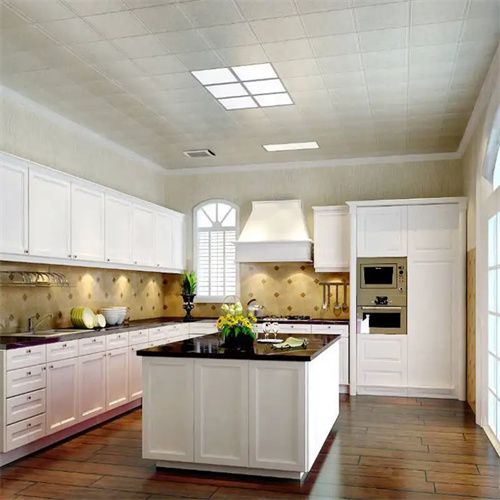 4、为了看清楚厨房的操作台,建议在吊柜底部按照一个射灯或筒灯,会减少我们做饭时的阴影,使用起来更加方便、安全,避免不小心切到手的危险。