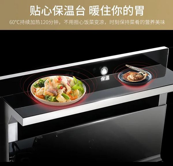 5.0kW大火力,不仅节能环保,做菜的效率也高。18m3/min排风量,五重油烟分离程序,油烟瞬吸不过脸,还有60℃恒温置物台。