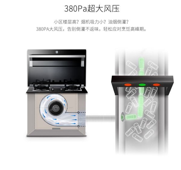 博净分体式集成灶采用侧吸下排设计,油烟处理能力更强,吸烟范围更大,博净分体式集成灶风压值高达380pa,排烟效果更强,告别倒灌不返味,无惧烹饪高峰期。