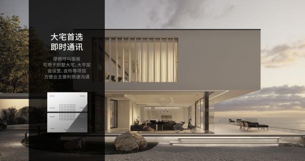 摩根瑞士系列一体化呼叫面板等于是装在墙上的对讲将,专为别墅设计,最大特色是沟通快速方便。呼叫面板有全屋呼叫、指定呼叫、一键静音等功能。别墅业主可以在每层有需要的房间安装呼叫面板,其中一个面板长按全屋呼叫,其他装有呼叫面板的房间都能听到。比如晚上吃饭时间,妈妈可以就在餐厅对着呼叫面板呼叫家人吃饭,呼叫面板最多可以串联32块,实现全屋呼叫。至于指定呼叫就可以选择呼叫对象,进行一对一呼叫,比如有客来访,女主人在客厅对着面板长按二楼书房,叫男主人下楼,而不会打扰到其他房间。