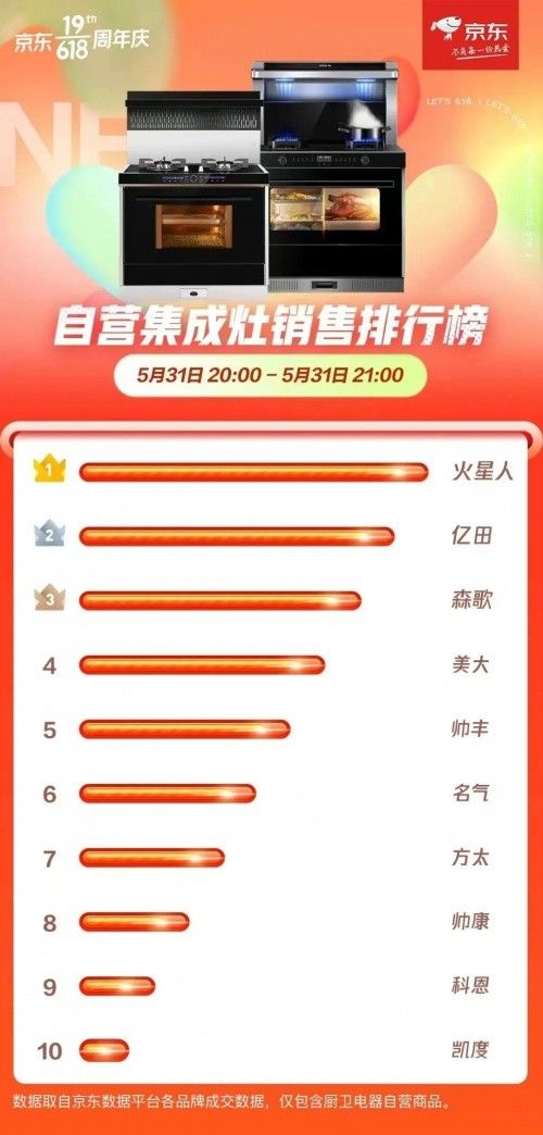科恩集成灶迎来618开门红!科恩京东自营再创行业佳绩,入选集成灶京东金榜!其中以科恩D151X变频蒸烤消一体集成灶的表现最为亮眼:618开门红销量同比增长120%!与此同时,如烟灶保洁一体集成灶D510、集成水槽洗碗机A3、蒸烤一体集成灶E430等产品也实现了越级飞升,在618活动首日即斩获骄人战绩:5月31日20:00-21:00,科恩集成灶登顶京东自营集成灶销售排行榜前十,靠数据说话,凭实力取胜!