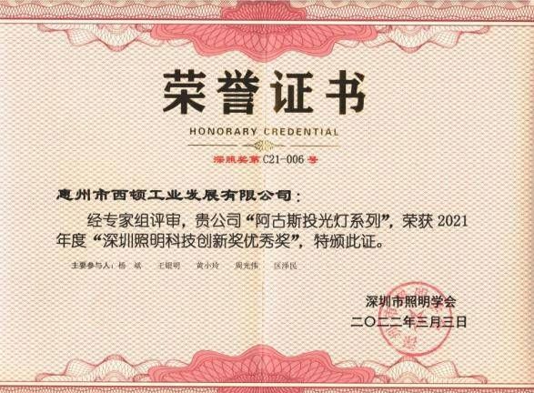近日,第十九届深圳照明奖经评委会办公室初审、评委会专家评审和社会公示环节,最终评选出89项获奖项目,其中西顿室外照明Argos阿古斯系列投光灯荣誉上榜,荣获“深圳照明科技创新奖优秀奖”。此次能够斩获该奖项,得益于西顿扎实的科研实力和优质的产品品质,这是西顿实力的又一见证,也是对西顿未来发展的一次激励。