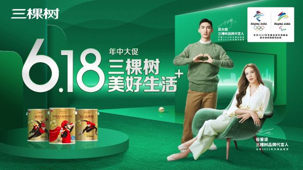 在本届年中大促活动里,三棵树也将携手谷爱凌、武大靖以及短道速滑队以不同的这种形式参与前期活动的推广预热和618整个活动的宣传中。武大靖作为品牌代言人,同时也是马上住的首席体验官,将会直接在6月17日参与到线上直播和线下活动,和消费者进行近距离互动。三棵树将奥运精神、品牌文化进行有机融合,让“绿色”、“健康”的品牌心智得到了鲜活的诠释,进一步夯实品牌力。