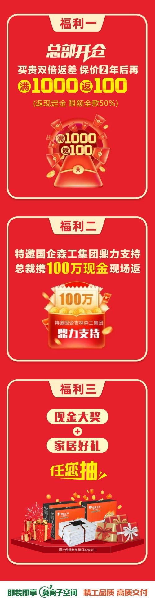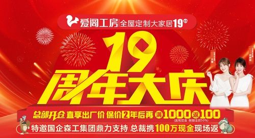 本月盛大启动19周年大庆,总部开仓直享出厂价,保价2年后再满1000返100,特邀国企吉林森工集团鼎力支持,总裁携100万现金现场返,返现活动正在如火如荼进行,返现余额分秒递减,返完即止。多重福利优惠超值袭来,全屋定制就选爱阁工房!