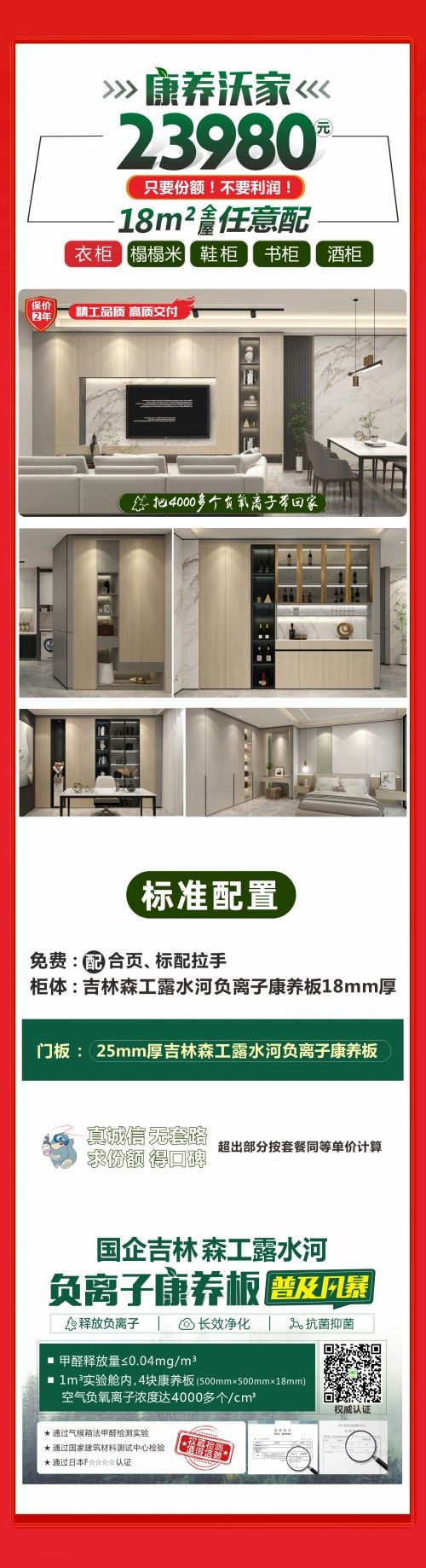 近日爱阁工房迎来自己的19周年大庆,此次庆典不仅有全新套餐和多项福利活动推出,更有FM970女主播倾情助阵:全屋定制就选爱阁工房-康养沃家,门板和柜体均采用国企吉林森工露水河负离子康养板,可以把4000多个负氧离子带回家,持久释放负氧离子,长效净化,抗菌抑菌。18㎡衣柜 鞋柜 酒柜 书柜 榻榻米全屋任意配,仅需23980元,让家人拥有清新舒适的居家环境,健康得到保障,是家庭最大的财富。
