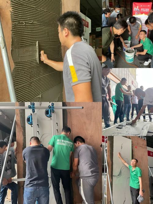 丰富理论知识结合专业实操才能相得益彰。在理论培训结束后,现场人员随即转战岩板实铺现场,具体操作通关环节;现场制备辅材、铺贴上墙等各项动作流程细节充分展示深深打动了各位工匠师傅,获得一致好评。工匠是品牌到用户最后一公里的桥梁,相信只有受过专业培训的工匠才能更好地实现岩板交付!