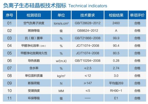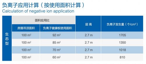 依据JC/T1016-2006《材料负离子发生量的测试方法》 的标准,得出产品达到2350个/cm3的释放量。负离子能迅 速中和空气中属于正离子的焦烟、二手烟、油烟及飘尘,达到消烟、除尘、改善空气结构的效果,同时具有改善肺功能、增强机体抗病能力、促进新陈代谢等功能。