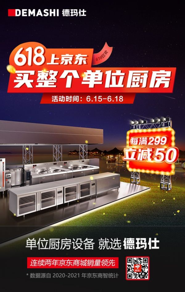 别担心! 618上京东,找德玛仕就能买整个单位厨房!德玛仕2022年618单位厨房采购大促将于6月15日晚上8点正式启动,至6月18日晚24时结束。届时, 德玛仕将携重磅优惠福利,参与到此次活动中,旨在为企事业单位提供更好用的单位厨房设备,助力企业解决一整个单位厨房设备采购的难题。