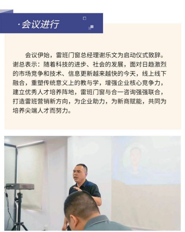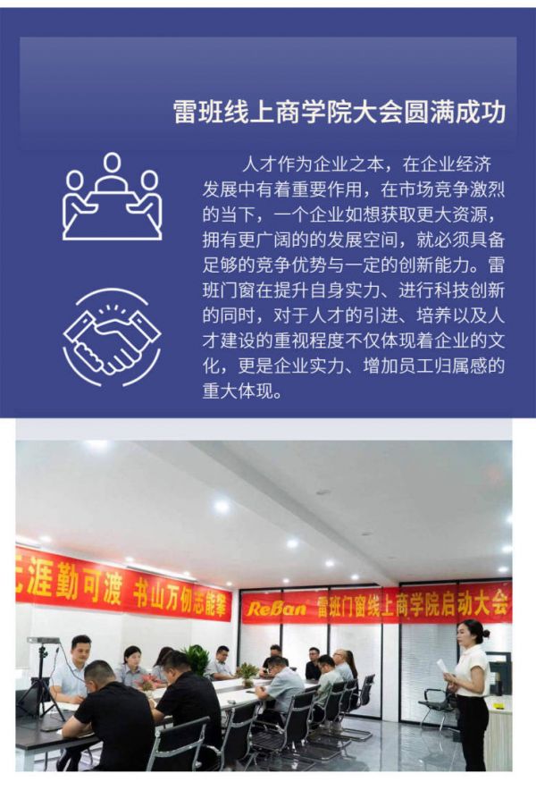 2022年6月13日,雷班门窗线上商学院启动大会圆满召开,这意味着雷班门窗进入数字化培训时代,培训重磅升级,实现线上线下,双向赋能,协同发展的新营销策略。