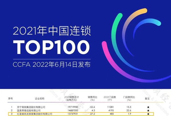 家居卖场快讯|红星美凯龙“2021中国连锁百强”连续霸榜前三甲