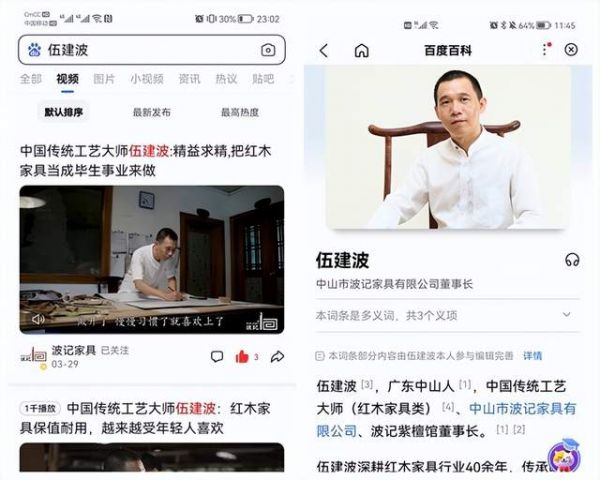 中国传统工艺大师、波记家具董事长伍建波百度百科页面