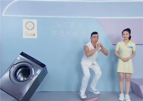 在海尔洗衣机的一场直播活动中,直驱洗衣机展现出了与传统洗衣机截然不同的安静平稳。现场,海尔直驱洗衣机一脚斜立,在高速运转时仍然能够屹立不倒,可见其超强的安静稳定性。