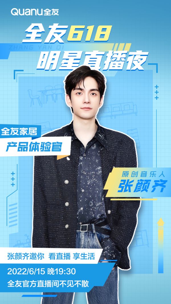张颜齐助阵全友618明星直播夜 爆款半价 买3免1