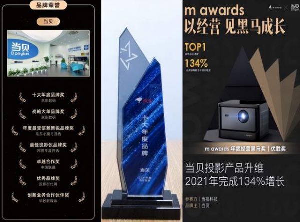 迄今当贝投影已经获得了京东电脑数码最快成长品牌,京东电脑数码十大年度品牌,以及天猫年度经营黑马奖等多项荣誉,名副其实的影响力投影仪品牌。并成为国内多家品牌争相模仿的对象,在国内投影仪创新路上已经成为新的引领者。