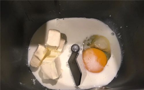 2、将一盒牛奶倒入一半,不能全部倒进去,不然做出来会太湿,就像发糕一样而不是面包。但这一点我们确实要特别的注意下,若面粉和起来太湿的话,烤出来的面包就没有面包组织。