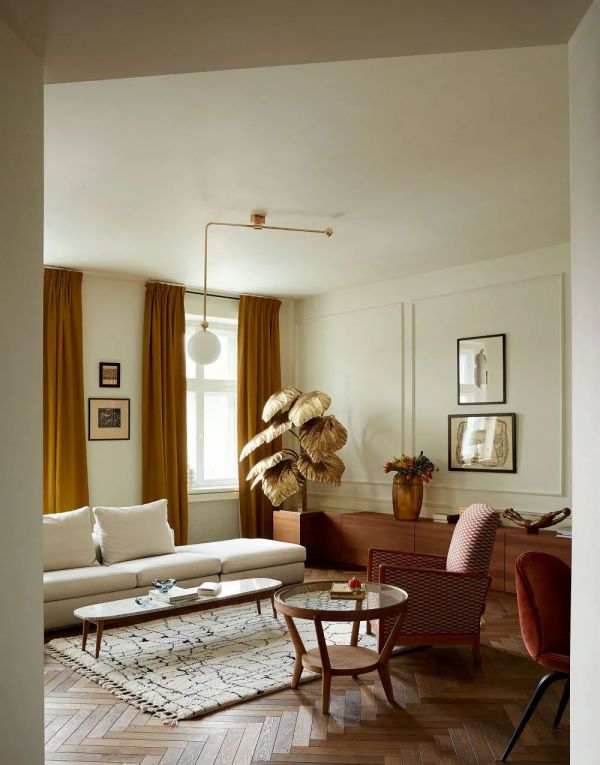 中古风带着对新生活的向往,用色非常大胆、活泼、热情,多与浓郁的橘黄、宝石红、橄榄绿搭配,极具民族特色,通过搭配呈现出色彩多而不乱,创造出有质感、有逼格的空间。