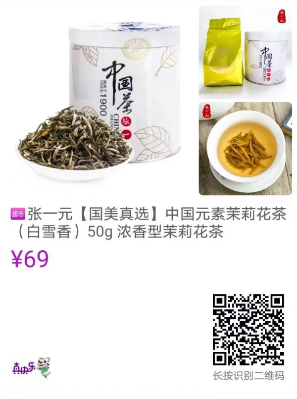 张一元茉莉花茶,历经7次窨制,保留花茶本味,茶香浓郁经久耐泡,茶汤清澈口感回甘,真快乐APP上这款50g浓香型茉莉花茶,69元立得,多买还享满99减30元,两罐更优惠。