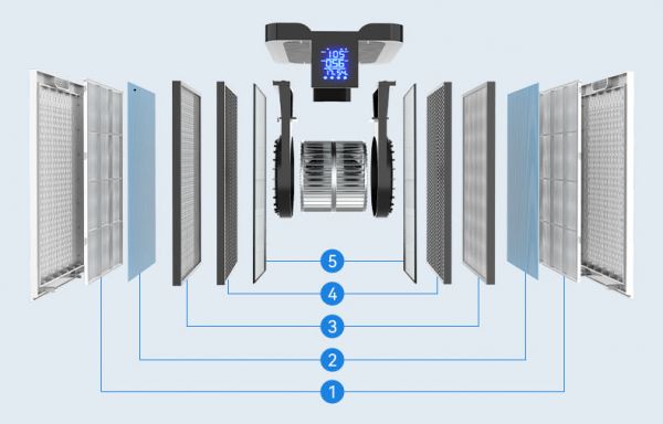 第五层纳米光触媒涂层滤芯:能够持续不断的净化甲醛/苯/TVOC等有害气体。双涡轮过滤系统,层层递进,提供高达10层过滤,让健康清新的空气覆盖整个家。